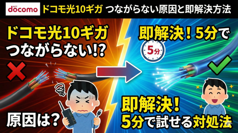この記事では、ドコモ光10ギガがつながらない症状を7つの原因別に分類し、それぞれの具体的な解決方法を解説します。初心者の方でも迷わず対処できるよう、手順を図解付きで丁寧に説明しますので、ぜひ最後までご覧ください。