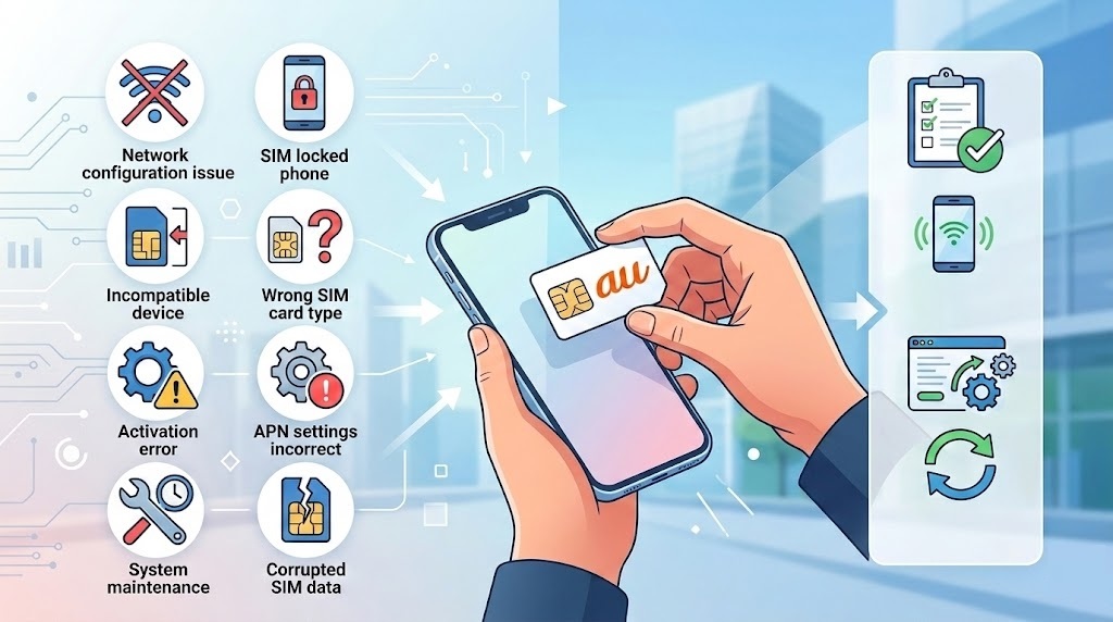 au SIMカードが差し替え後に使えない原因は、大きく分けて7〜8パターンあります。この記事では、それぞれの原因と今すぐ試せる具体的な解決策をiPhone・Android両対応で丁寧に解説します。