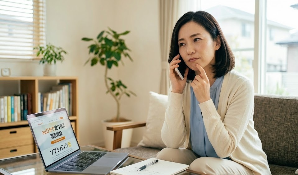 この記事では、ソフトバンク光からauひかりへの乗り換えを電話勧誘された方向けに、勧誘の実態・確認すべきポイント・乗り換えのメリット・デメリット・上手な断り方まで、利用者の口コミと公式データをもとに徹底調査した内容をまとめました。「電話を受けた後に何をすべきか」が分かる記事です。
